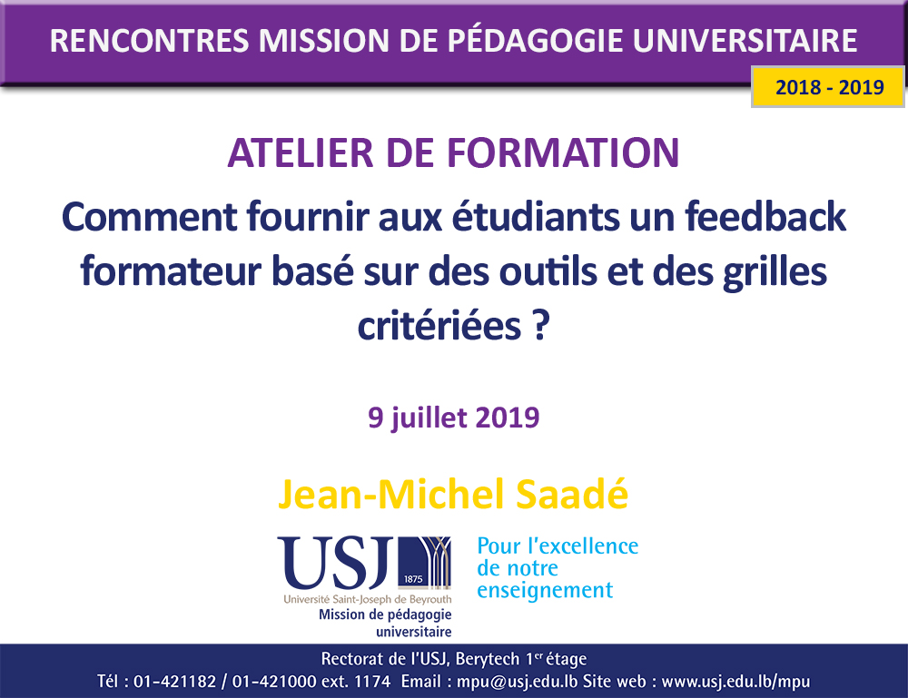 Comment fournir aux étudiants un feedback formateur basé sur des outils et des grilles critériées ? - Jean-Michel Saadé