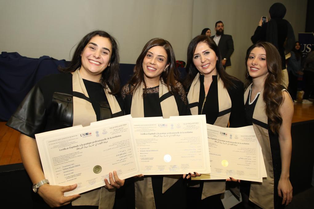 Le Centre professionnel de médiation (CPM) de l'Université Saint-Joseph de Beyrouth (USJ) a célébré, lors d’une cérémonie qui s'est tenue à l'Amphithéâtre François S. Bassil du Campus de l’innovation et du sport de la rue de Damas, la remise des diplômes aux 66 étudiants des trois branches du CPM à Beyrouth, Saida et Tripoli, qui ont suivi une formation intensive en vue de devenir des médiateurs professionnels.