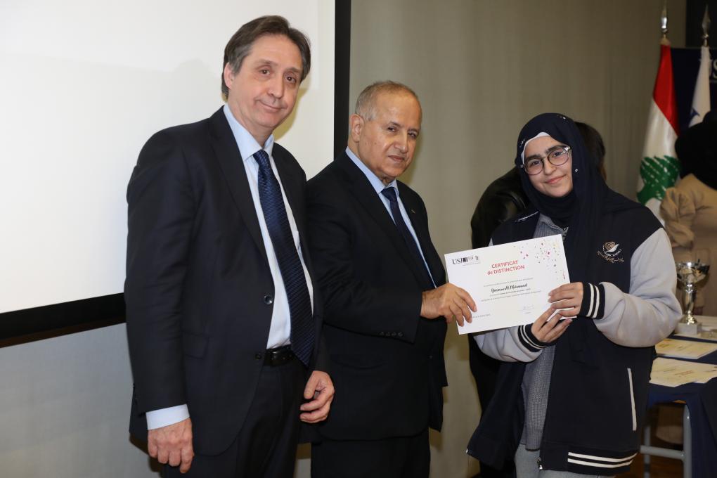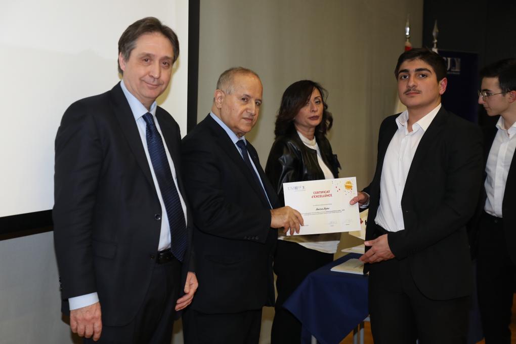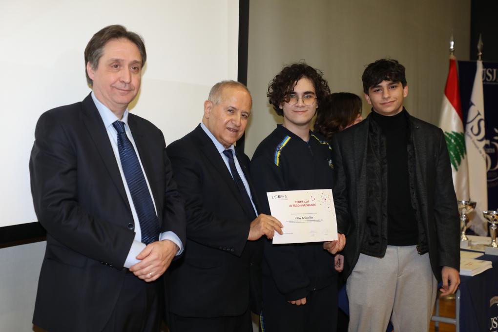 Durant la compétition, des certificats de participation ont été distribués par le Père Recteur, Pr. Salim Daccache et le Doyen Jean-Fançois Verne en guise de reconnaissance aux écoles participantes (Certificat de reconnaissance) et aussi pour féliciter tous les étudiants qui se sont distingués (Certificat de distinction) ainsi que les finalistes (Certificat d'excellence).