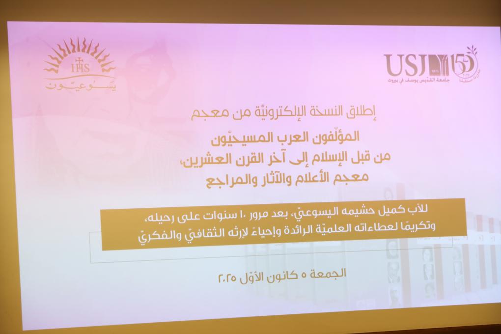 Cette cérémonie rend hommage aux contributions scientifiques du P. Héchaïmé, S.J., dans le domaine des études arabes chrétiennes et présente la version numérique de son encyclopédie, désormais accessible aux chercheurs et au grand public.