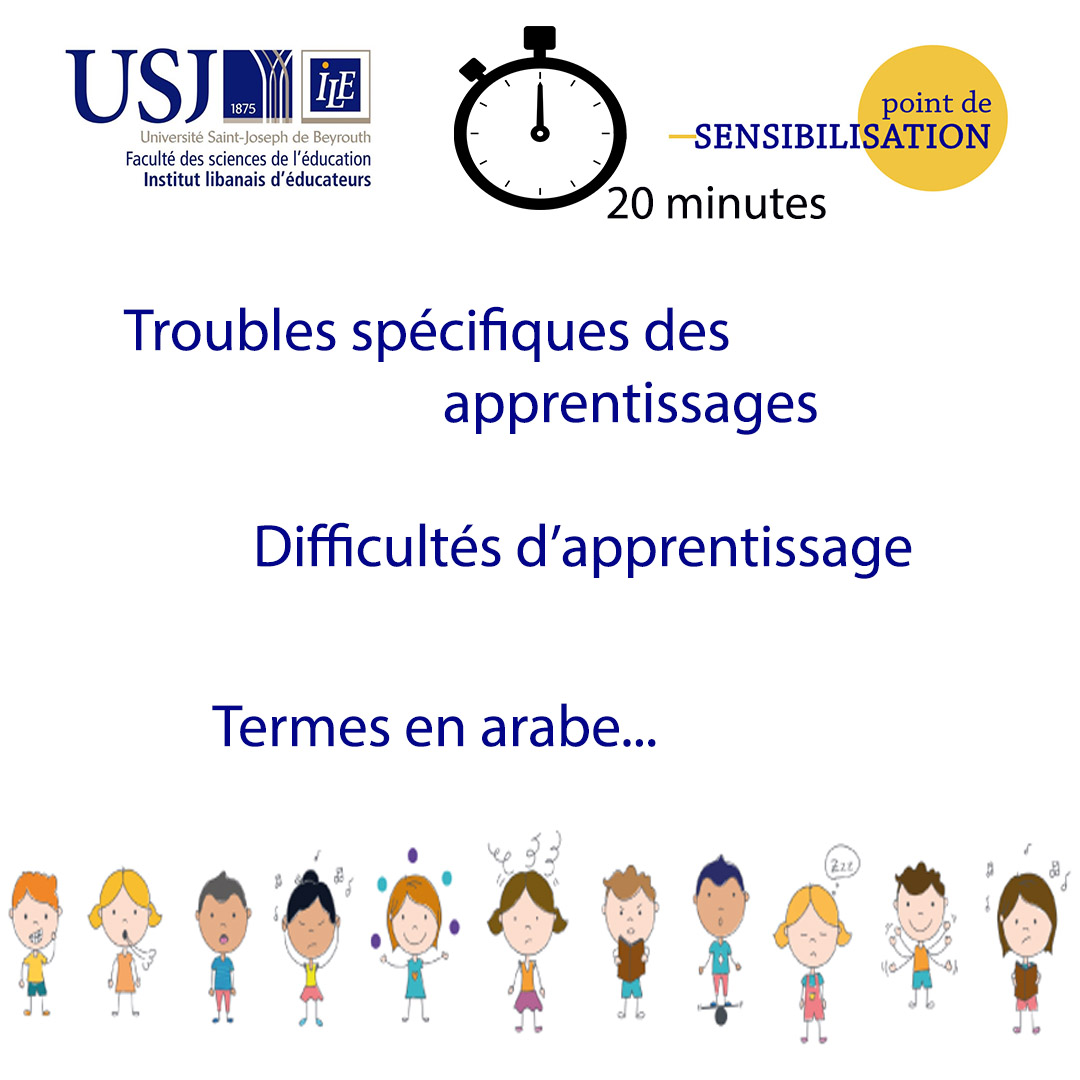 Dans le cadre des 20 minutes de sensibilisation de l’ILE, Mme Rania Abdo a tenté de distinguer entre Troubles spécifiques des apprentissages et difficultés d’apprentissage. Elle a proposé aussi la traduction de certains termes en arabe dans cet article.