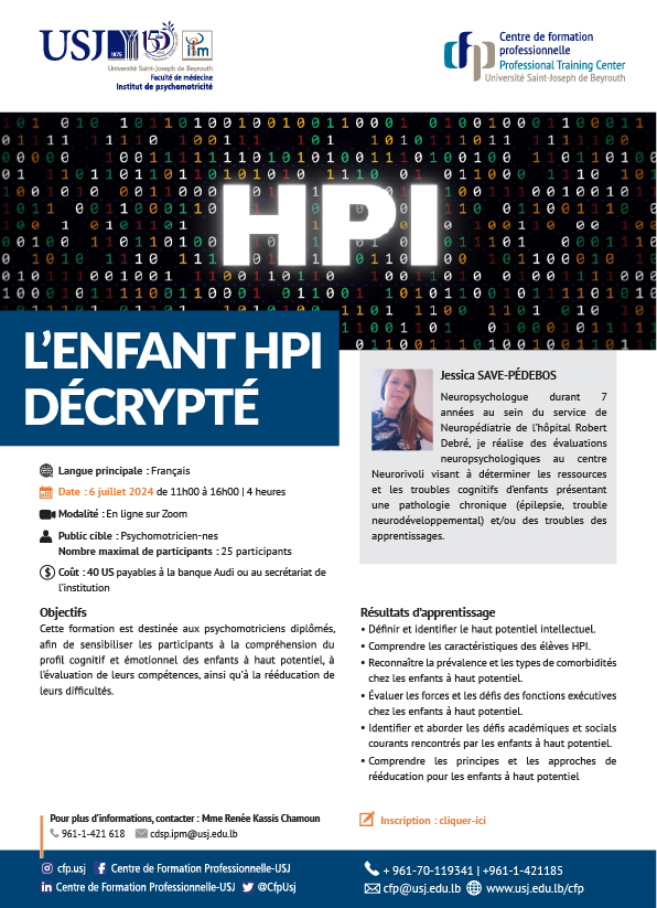 Cette formation est destinée aux psychomotriciens diplômés, afin de sensibiliser les participants à la compréhension du profil cognitif et émotionnel des enfants à haut potentiel, à