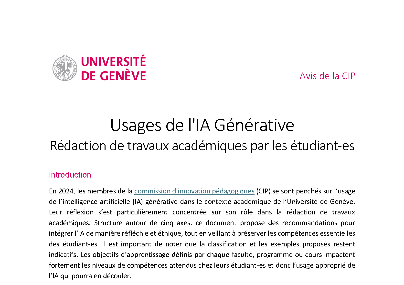 Usages de l'IA Générative Rédaction de travaux académiques par les étudiant-es