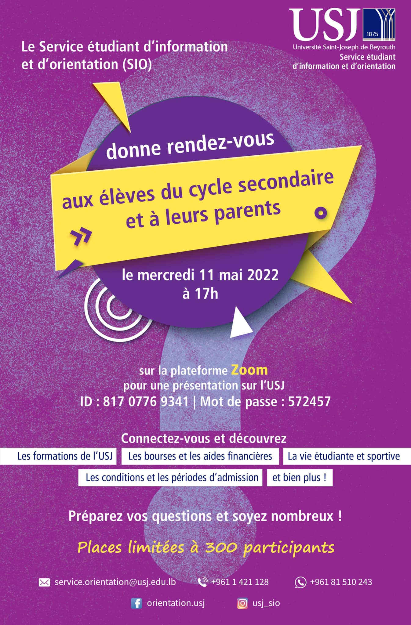 Rejoignez-nous le mercredi 11 mai 2022 à 17h sur Zoom pour une séance de présentation sur l’USJ.