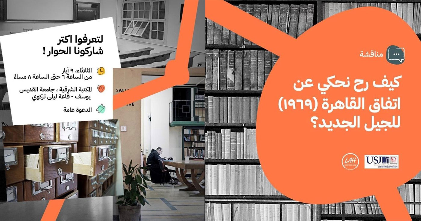 La discussion sur l’accord du Caire (1969) aura lieu le mardi 9 mai de 18h00 à 20h00 à l’amphithéâtre Leïla Turqui de la BO. En outre, la BO propose à ceux qui le souhaitent un tour guidé à 17h00.