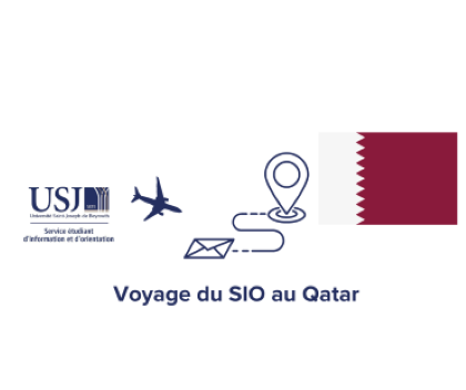 Le Service étudiant d'information et d'orientation (SIO) de l'USJ est ravi d'annoncer son prochain voyage au Qatar, prévu du 25 au 27 septembre 2023, afin de participer à la foire de l'École libanaise du Qatar ainsi qu'à celle de Global Academy International. Au cours de ce voyage, des rencontres seront organisées avec des élèves du cycle secondaire des établissements scolaires de la région, au cours desquelles le SIO assurera des séances d'orientation et des présentations sur l’USJ.