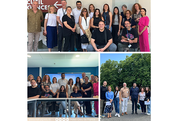 Dans le cadre des activités de formation de la cellule d'urgence médico-psychologique, une délégation formée par des membres du Service de psychiatrie de l'Hôtel-Dieu de France a rendu visite aux Hospices Civils de Lyon (HCL) et au Centre Hospitalier Le Vinatier à Lyon dans le but de compléter sa formation pratique et théorique à l'activation du plan blanc en cas de désastre et d'afflux massif de patients.