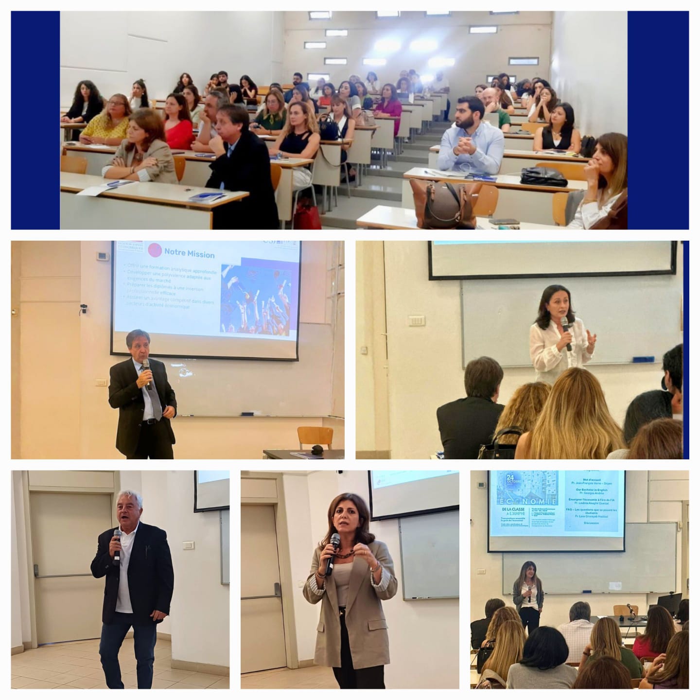 Pr. Georges Andréa a, pour sa part, présenté le programme de Licence en anglais « Bachelor in Economics », fidèle reproduction de la licence francophone. Il a également mis en lumière la participation active de nos étudiants à diverses compétitions académiques et professionnelles, du concours BlomInvest VSE au CFA Challenge, en passant par le London Exchange Competition, où ils se sont systématiquement distingués par leur excellence.