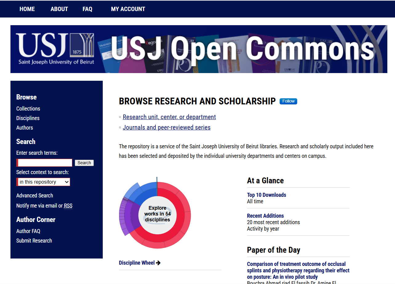 L’Université Saint-Joseph de Beyrouth (USJ) a franchi une nouvelle étape dans la valorisation de sa recherche en rejoignant Digital Commons, la plateforme internationale d’archivage d’Elsevier. À travers ce partenariat, l’USJ bénéficie d’un hébergement sécurisé, d’un design personnalisé, d’une visibilité accrue grâce à l’optimisation pour les moteurs de recherche de tableaux de bord analytiques détaillés ainsi que d’un système éditorial performant.