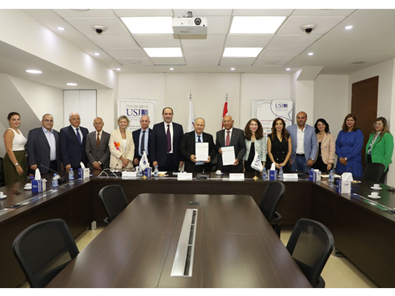 The signing ceremony was held at the Rectorate in the presence of Prof. Salim Daccache, SJ, Rector of USJ, and Mr. Mohammad Saleh, President of the Chamber, joined by several university officials: Prof. Salah Abou Jaoude, SJ, First Vice-Rector; Prof. Fadi Geara, Vice-Rector for Administration; Prof. Carla Eddé, Vice-Rector for International Relations; Prof. Nadine Riachi Haddad, Secretary-General; Mrs. Cynthia-Maria Ghobril Andréa, Director of Fondation USJ; Prof. Dina Sidani, Director of the South Lebanon Campus - Rev. Fr. André Masse, SJ (CLS); and Mrs. Ursula Hage, Director of the Career and Placement Office at USJ.