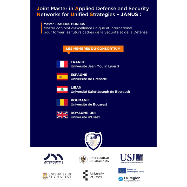 L’USJ a le plaisir d’annoncer la sélection de son Master conjoint Erasmus Mundus JANUS : Joint master in Applied security and defense – Networks for Unified Strategies, retenu parmi les 37 projets financés par la Commission Européenne sur 195 candidatures!