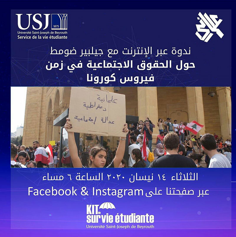 Le Club Laïque de l'USJ organise une conférence sous le thème : Droits sociaux au temps du Coronavirus avec M. Gibert Doumit.