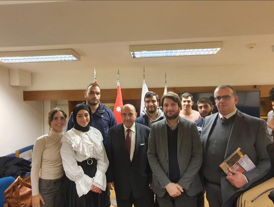 وفي الختام، التقى سعادته ببعض الطّلّاب الأردنيّين في الجامعة.